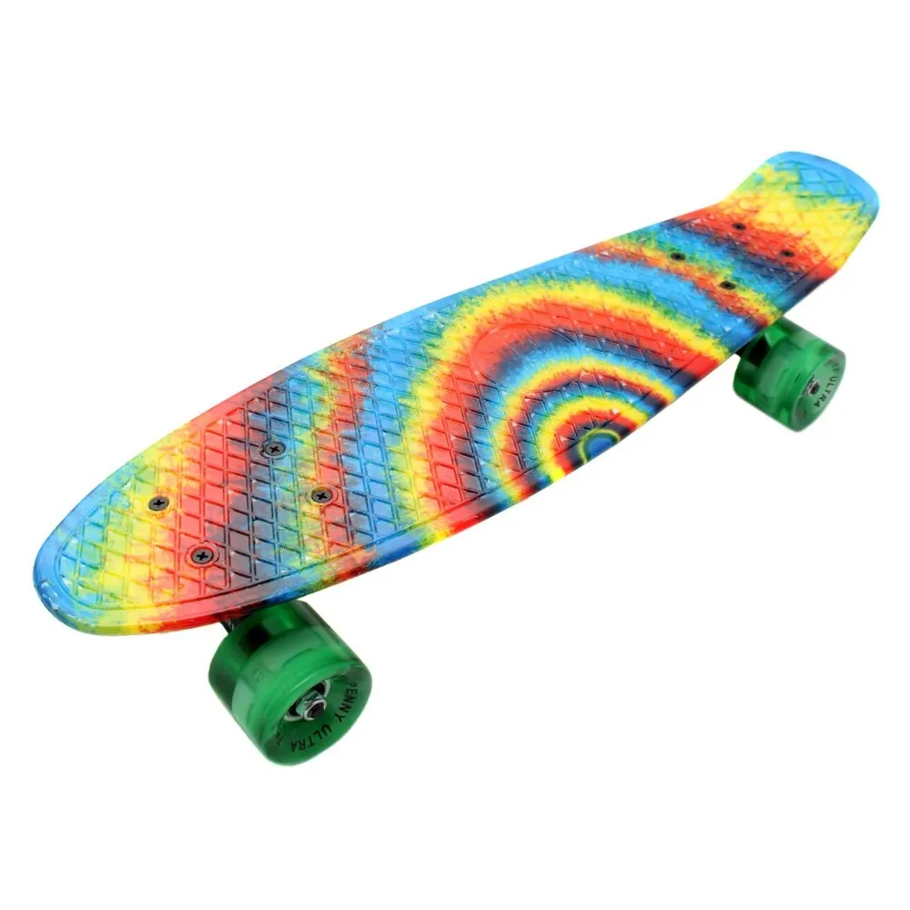 Пенни Борд с радужным рисунком Zippy skateboards Ultra Led - новая серия пенни борд с принтами и со светящимися колесами – это сочетание ярких, тематических рисунков и эффектных светящихся колес, а также улучшенного и доработанного качества, плавности хода. Принт с двух сторон доски.