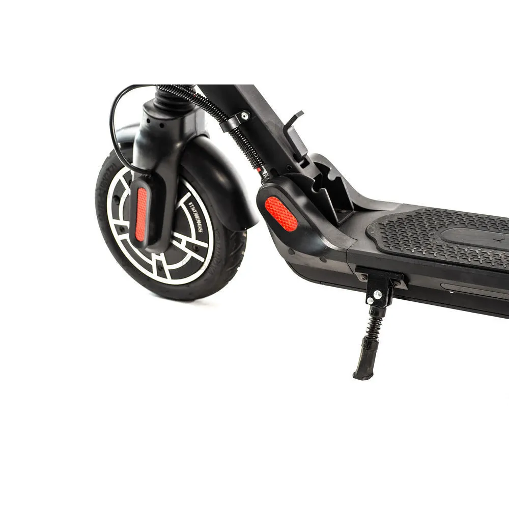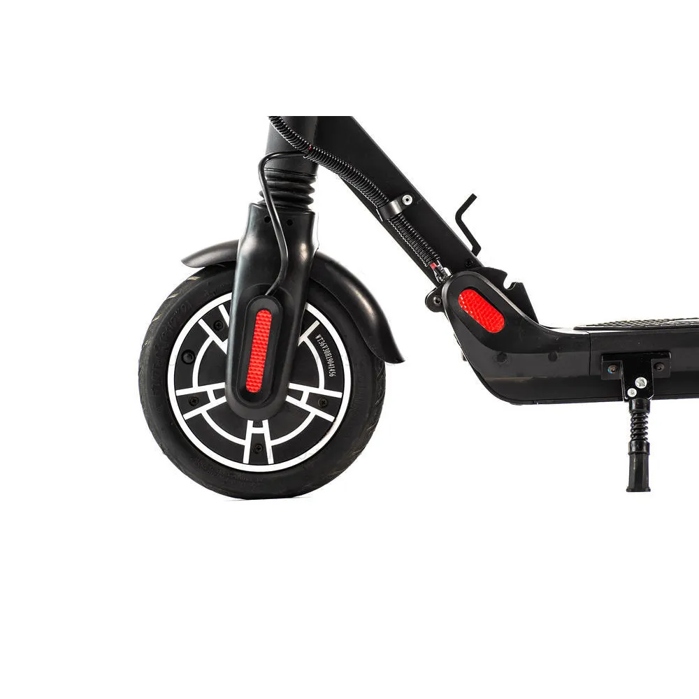 Kugoo ES2 оснащен 8.5-дюймовыми колесами с надувными шинами. Также в данной модели предусмотрена система освещения, состоящая из мощной передней фары, и системы светоотражающих элементов (на колесах, раме, с передней и задней стороны), поэтому вы гарантированно не останетесь незамеченным при движении в темное время суток или ночью.