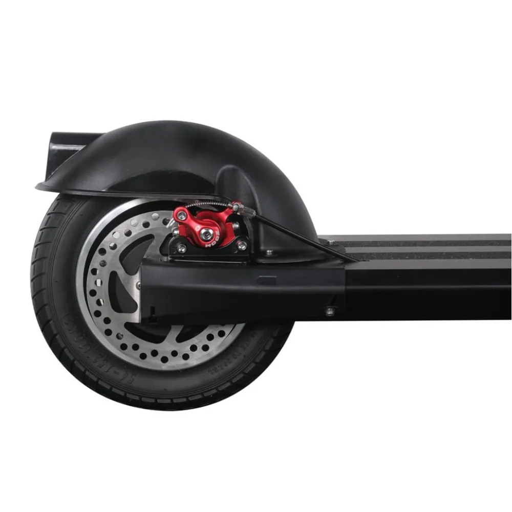 Техника оснащена прочной и надежной стальной рамой, 10-дюймовыми шоссейными колесами, рассчитанными для езды в черте города и по проблематичной местности. Наличие амортизаторов минимизирует вибрацию, обеспечивает плавность движения на кочках.