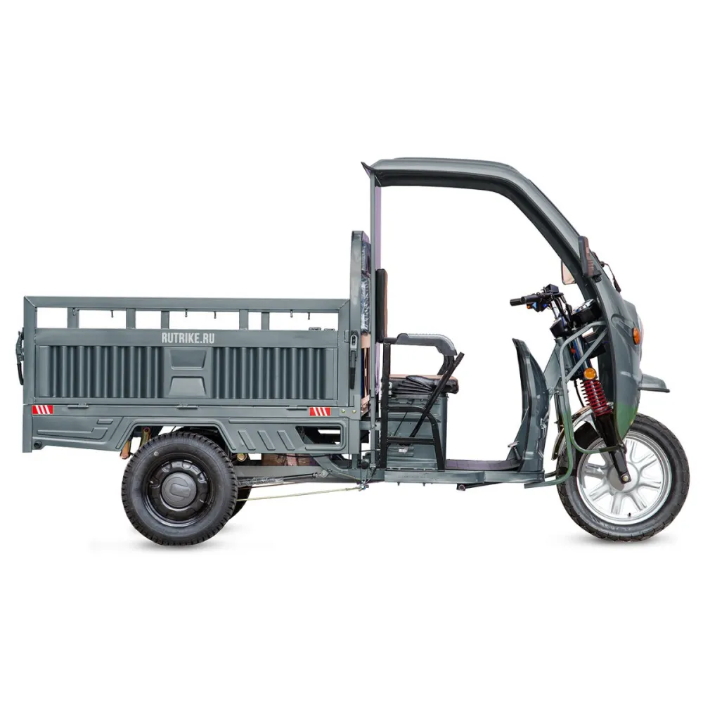 Грузовой электротрицикл Rutrike Гермес 1500 60V1200W серого цвета - это надежный и эффективный транспортный средство для перевозки грузов. Его мощность, грузоподъемность и безопасные тормоза делают его идеальным решением для различных бизнес-потребностей.