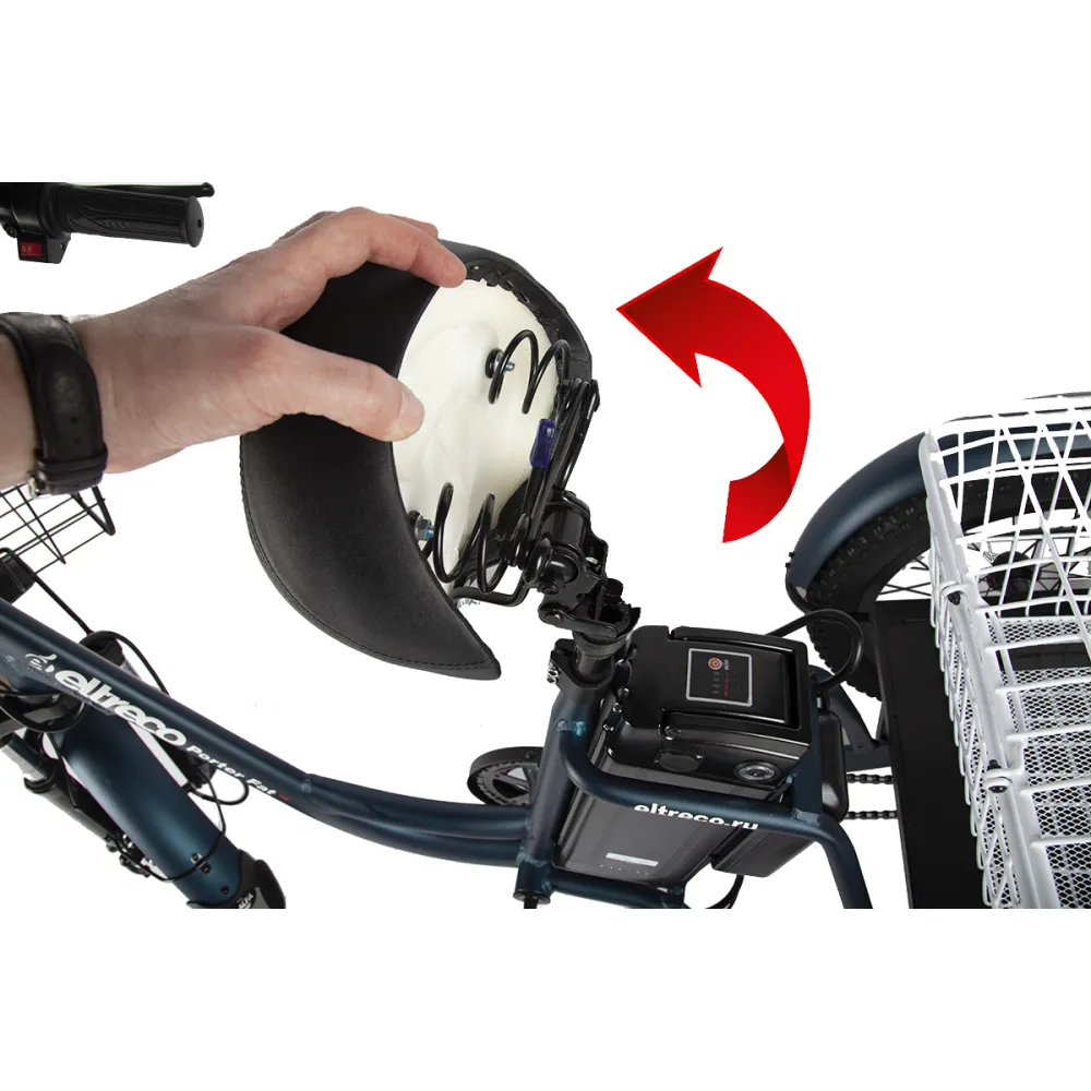 ТРИЦИКЛ ELTRECO PORTER FAT 700 – это самый мощный грузовой электровелосипед. Оснащен мощным электродвигателем в 700W. Благодаря наличию трех колес, является очень устойчивым и надежным при езде. Подойдет для работ в огороде, в саду, для перевозки малых и габаритных грузов, для поездок за продуктами. Он подходит даже для обычных велопрогулок.