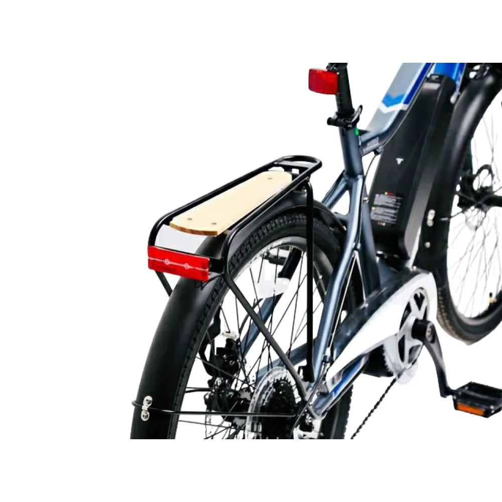 Возможности велогибрида допускают езду по городской местности и бездорожью. Мощностные характеристики электромотора (250 Вт) считаются лучшими в своем сегменте. В сочетании с фирменной быстросъемной АКБ максимальные скоростные параметры составляют 28 км/час, а дальность хода – 70, км. Трансмиссия из 8 скоростей, 26-дюймовая колесная часть готовы доказать, совершенству тс нет границ. Комфорт и удобство езды на продолжительные расстояния гарантированы регулируемым по ростовым параметрам анатомическим седлом и удобной формой руля. Наличие велокомпьютера позволяет мониторить важные технические показатели (настоящую скорость, степень зарядки батареи и протяженность пути), исключать непредвиденные ситуации в дороге. Для заказа супертехники по лучшей цене предлагаем сделать телефонный звонок специалисту интернет-магазина.