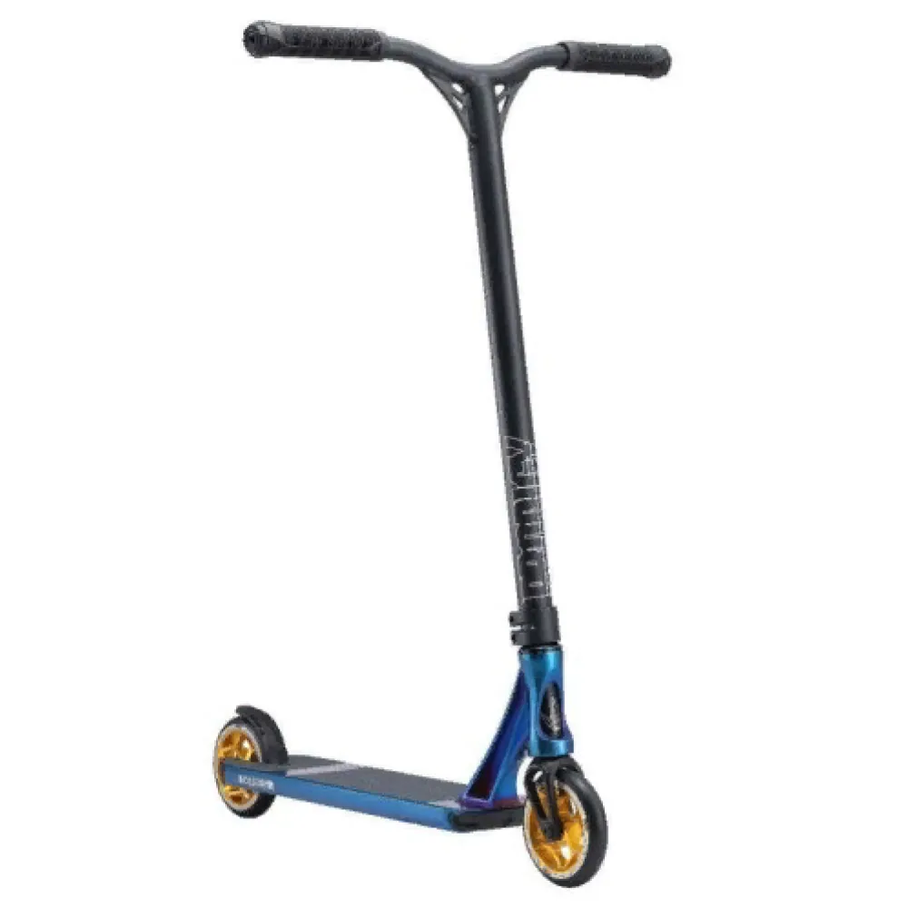 Y-образный руль с мягкими анатомическими грипсами обеспечивает крепкий хват, не вызывает усталости при длительной эксплуатации самоката. 120-мм колеса из полиуретана с подшипниками ABEC-9 последнего поколения гарантируют массу положительных эмоций и выброс адреналина. Характеристики колесной части и отзывы пользователей подтверждают возможность достижения максимального разгона, важного для лидерства.