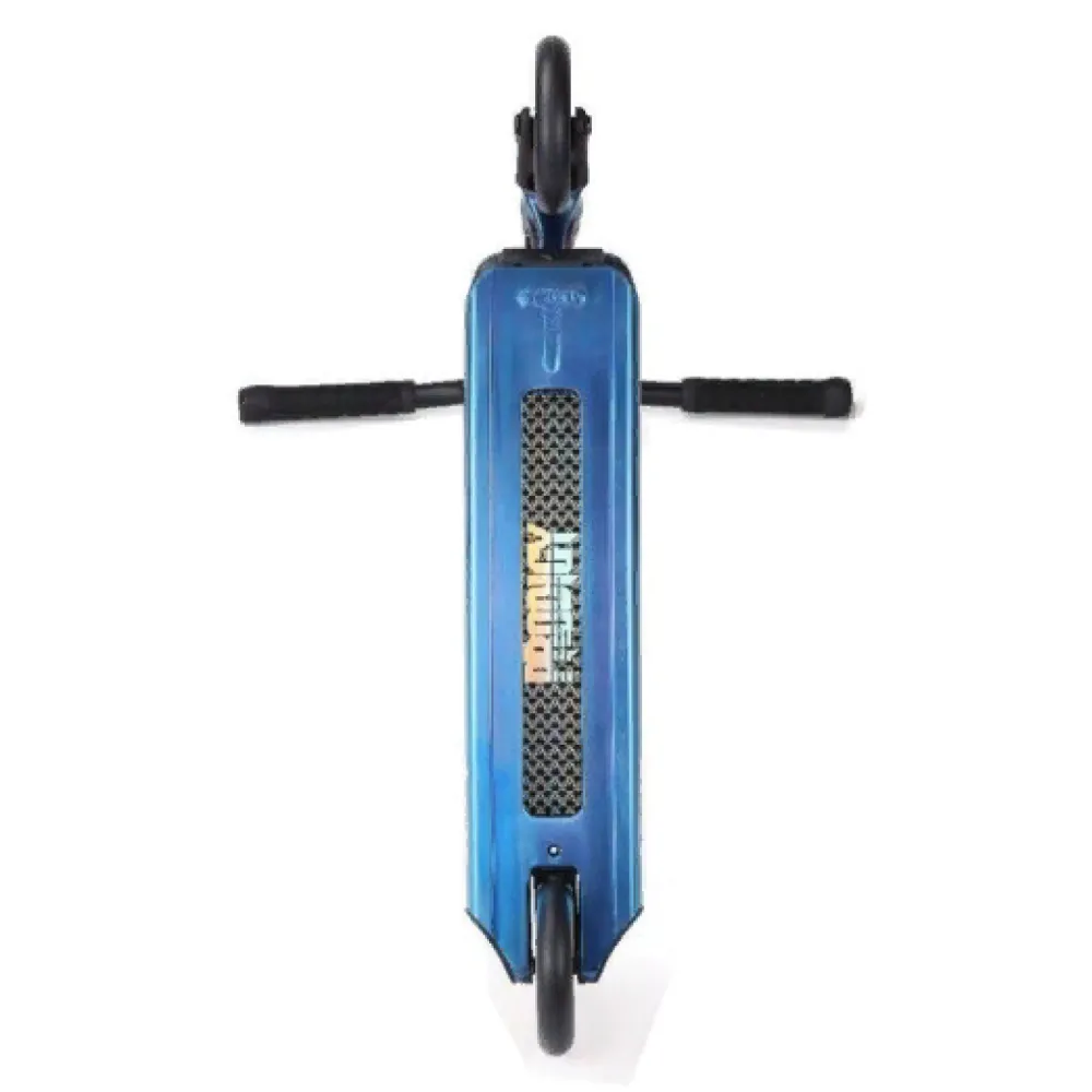 Самокат изготовлен из облегченного алюминия, весит 3,48 кг, долговечный в эксплуатации. Технические характеристики позволяют выполнять сложные трюки, прыжки, в том числе и с кручением. Нескользящая дека – широкая и устойчивая, исключает случайные падения и другие непредвиденные действия со стороны трюкача.